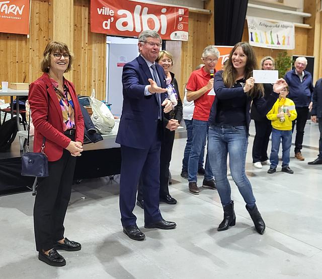 Iryna reçoit le premier prix des mains du deputé Philippe Bonnecarrère et en presence de Mme La Maire d’Albi , Stéphanie Guiraud-Chaumeil.