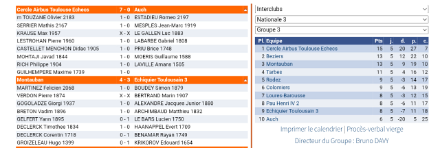 Les résultats et tableaux de ce dernier dimanche Interclubs :